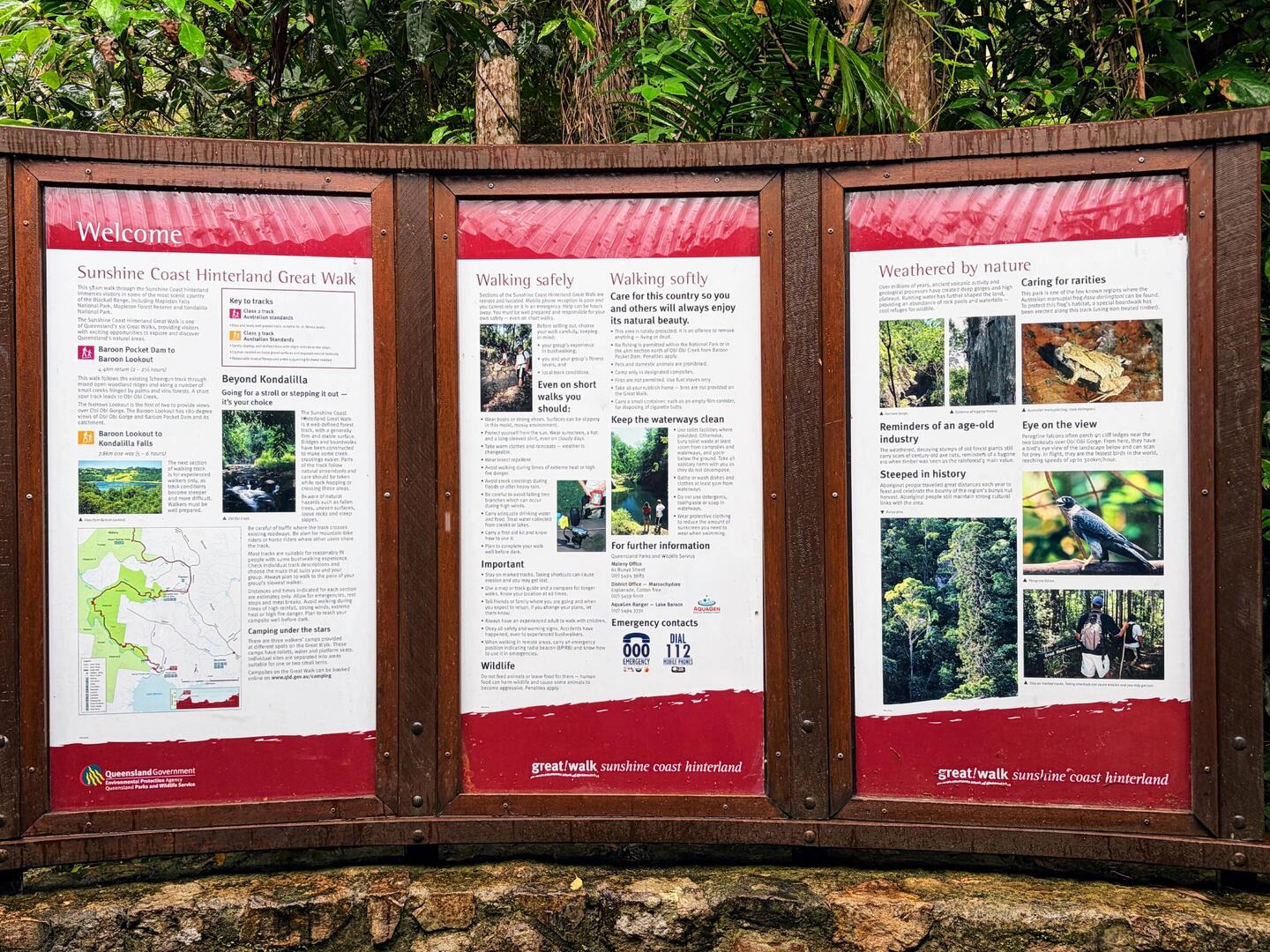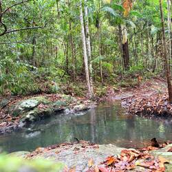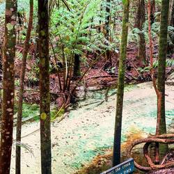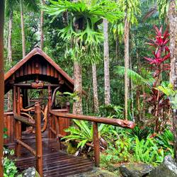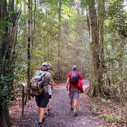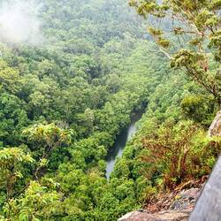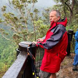 Heute gibt es im Regenwald viel Regen im Wald. Wir bekommen von Ally und Rick eine ordentliche Regenjacke und Wanderstöcke. Wir wollen zu einem Aussichtspunkt mit Fluss und Wasserfall wandern. UnsLæs mere