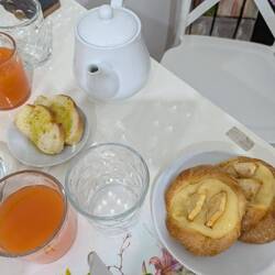Unser B & B ist liebevoll von Künstlern gestaltet, das Frühstück mit sizilianischen Spezialitäten wie Brot mit Olivenöl und süßem Gebäck angereichert.