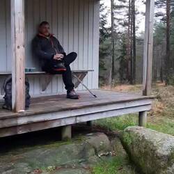 Übernachtung mitten im Nichts. Ein Ausgangspunkt für Wanderwege im Wald. Nachts sehr unheimlich und einsam. Heute 6,4 km durch die Wildnis gewandert. Am Abend zuvor ein Elchkalb gesehen.