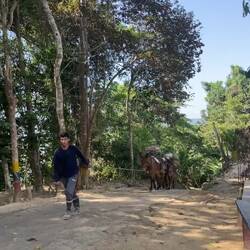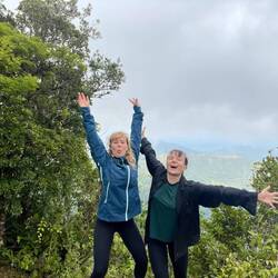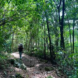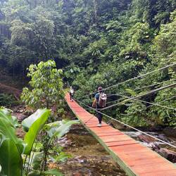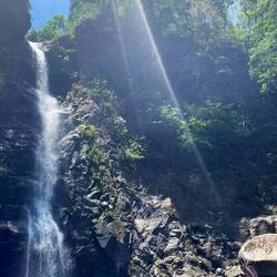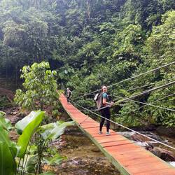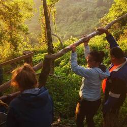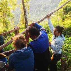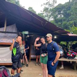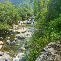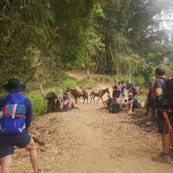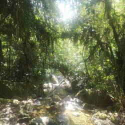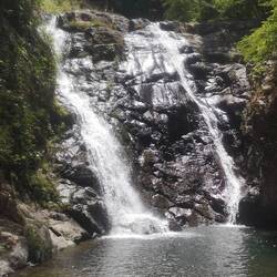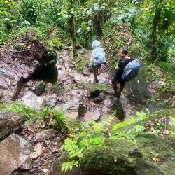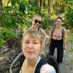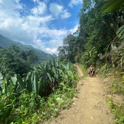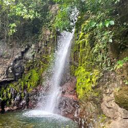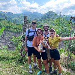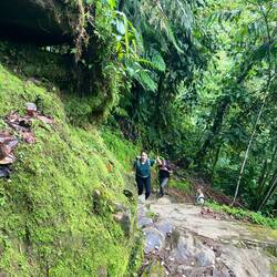 Und die Wanderung war zwischendurch wirklich anstrengend. Es ging viel bergauf und teilweise bergab. An Tag 2 hats ja nachmittags geregnet und danach war der Boden oft schlammig und rutschig. Aber die Natur war einfach atemberaubend schön.. Manchmal ging es über einen. Bergkamm und links und rechts vom Weg ging es bergab ins Grüne und um uns herum nichts weiter als grüne Berge. So viele Wasserfälle und Flüsse! Jeden Tag konnten wir irgendwo schwimmen gehen. Am ersten Tag mussten wir dafür einen Wasserfall herunterspringen, danach konnten wir uns vom Wasser den Rücken massieren lassen.