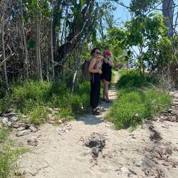 Am Strand hab ich dann gedankenverloren einen Zwieback aus meinem Rucksack gezaubert und noch bevor ich reinbeißen konnte, stand ein Affe vor mir, mit Baby auf dem Rücken und ist wirklich schnell auf mich zugelaufen. Ich hab mich erschreckt und war ein bisschen besorgt, dass das Äffchen jetzt auf mich drauf springt oder beisst oder sowas. Deshalb hab ich ihm einen kleinen Teil vom Zwieback zugeworfen. Obwohl es verboten ist. Plötzlich kam aus dem Gebüsch der Rest der Familia. Eine Freude für die ganzen Touristen, die hinter uns gewandert sind, weil alle in Ruhe Fotos machen konnten.