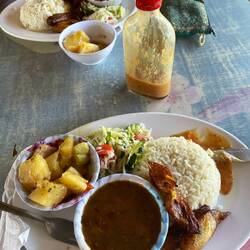 Da kann man bestimmt auch gut entspannen und wir wollen noch in diesen Soda Arroz y Frijoles Laden, in dem es Reis mit Bohnen auf Karibische cocosmilch Version gibt mit Fisch - häärlich. War leider bis jetzt zwei Tage hintereinander immer schon aus, daher vielleicht ja heute.Read more