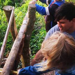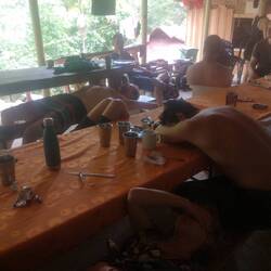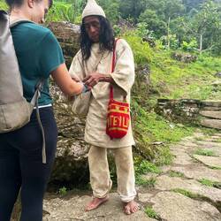Danach gings noch dem Schamanen, der als einziger in der Ciudad Perdida wohnt. Mit seinen zwei Frauen, und tausend Kindern. Wir haben dann alle ein Armband mit bunten Perlen dran bekommen. Jetzt sind wir vor bösen Tieren geschützt und vor Krankheiten. Die Mücken haben uns aber trotzdem gestochen.