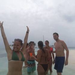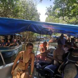 Die Fahrt war ganz lustig und schön, die Stadt nochmal vom Wasser aus zu sehen. Ich war so müde, dass mir ab und zu die Augen zugefallen sind. Angekommen sind wir am Playa Blanca. Ein weisser länger Strand mit ganz vielen Restaurants davor und Speedboats, die davor parken. Laut Tour sollten wir direkt weiterfahren zum Schnorcheln. Deshalb sind wir erstmal sitzen geblieben, bis wieder schon jemand auf uns zugekommen ist und eine Frau mich sogar angerufen hat, dass wir am Strand aussteigen sollten. Mit dieser Frau sind wir dann zu einem Mann, der uns in eines der Restaurants gebracht hat. Da sollten wir irgendwie schon wieder warten.