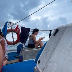 Die Fahrt zurück war das Highlight. Es war ganz wellig und dass Boot ist nur so übers Meer geflogen.. Manchmal sind wir ganz doll aufgeknallt. Eine Frau vorne hat sich schrottgelacht und ist pitschnass geworden. Das war toll!