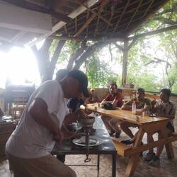 Abends haben wir nicht mehr so viel gemacht, weil wir beide ziemlich müde waren. Obwohl wir nicht mal im Nationalpark angekommen sind, sind wir ganz schön viel gelaufen. Wir haben sehr lecker gekocht: Zwiebeln und Tomatenmark angebraten, Reis dazu, mit Wasser aufkochen lassen (etwas Essig rein) und am Ende Bohnen und Paprika dazu. Hat sehr gut geschmeckt.Read more