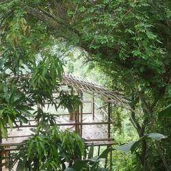 Vor dem Aufstieg wurden wir ja schon gewarnt. Ich hab meinen kleinen Rucksack in den großen gesteckt und bin ganz ganz langsam den Berg hoch gekrochen. Oben angekommen hatten wir beide etwas Angst, dass sich das El Zopilote Trauma wiederholt. Aber auf den ersten Blick sah alles etwas besser organisiert und sauberer an. Nicht so krass eso-Hippie-mässig. An der Rezeption meinte die Rezeptionistin dann, dass wir jetzt noch ein Stückchen gehen würden. Laura hat man die Panik schon etwas angesehen. Die Zimmer, die näher an der Rezeption waren, haben wir uns auch noch angesehen aber das was wir eigentlich gebucht hatten, hatte weniger Betten und so kuschelige Schlafkabinen.