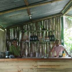 Eigentlich schön so Regen, das lässt die Zeit gerade langsamer ablaufen - zwingt einen zum verharren und relaxen. Ich dachte ich wär die erste in der Küche , doch da sitzt schon das Paar aus Mainz und überlegt, wie sie ihre Tagesordnung jetzt anpassen. Die wollten nämlich heute in den Nationalpark und waren vorm Regen in der Küche und wollten warten bis der Regen aufhört um zurück ins Überdachte zu huschen. Kurzer üblicher Reiseroutenplausch, Anna aus Belgien kommt auch.