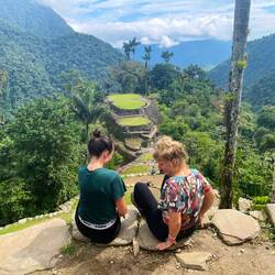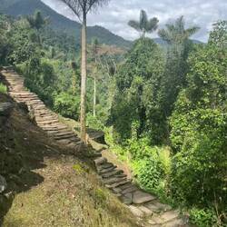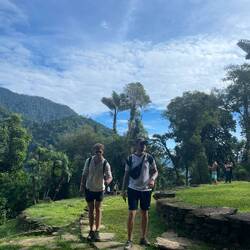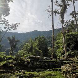 Zur Ciudad Perdida mussten wir die 1200 Stufen hinauf laufen. Das war schon ziemlich anstrengend. Die Stufen bestehen auch aus ganz normalen, unterschiedlich geformten Steinen. Hat aber auch Spaß gemacht, da hochzukrackseln und irgendwann waren wir dann schon oben in der Ciudad Perdida. Was ich am erstaunlichsten fand ist die Größe der verlorenen indigenen Stadt. Das, was ausgebuddelt wurde, ist schon sehr gross, aber das Gelände ist noch viel viel größer, angeblich der Großteil des Weges, den wir dort hingelaufen sind.