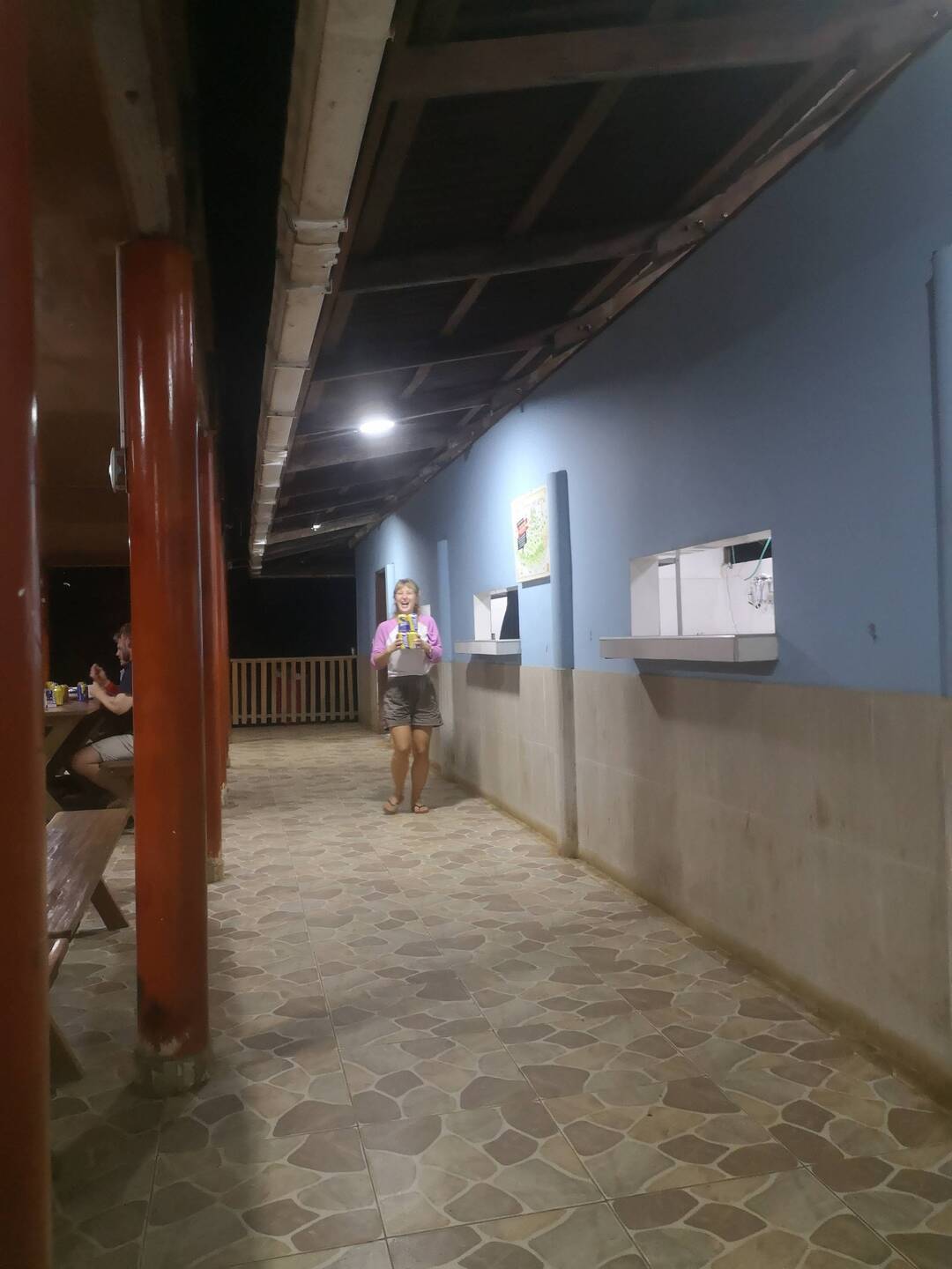 Abendessen gabs im Hostel. Das war ne kleine Enttäuschung. Es gab Curry, das so mittelmäßig geschmeckt hat und vor allem wars zu wenig. Danach hatte ich noch ein bisschen Hunger und es gab keinen Nachschlag. Wir hatten aber vorher auch nicht so viel gegessen. Danach haben wir noch etwas von unserem heimlich hereingeschmuggelten Wein getrunken. Fremdgetänke sind eigentlich verboten, aber der Wein kam noch aus Costa Rica.