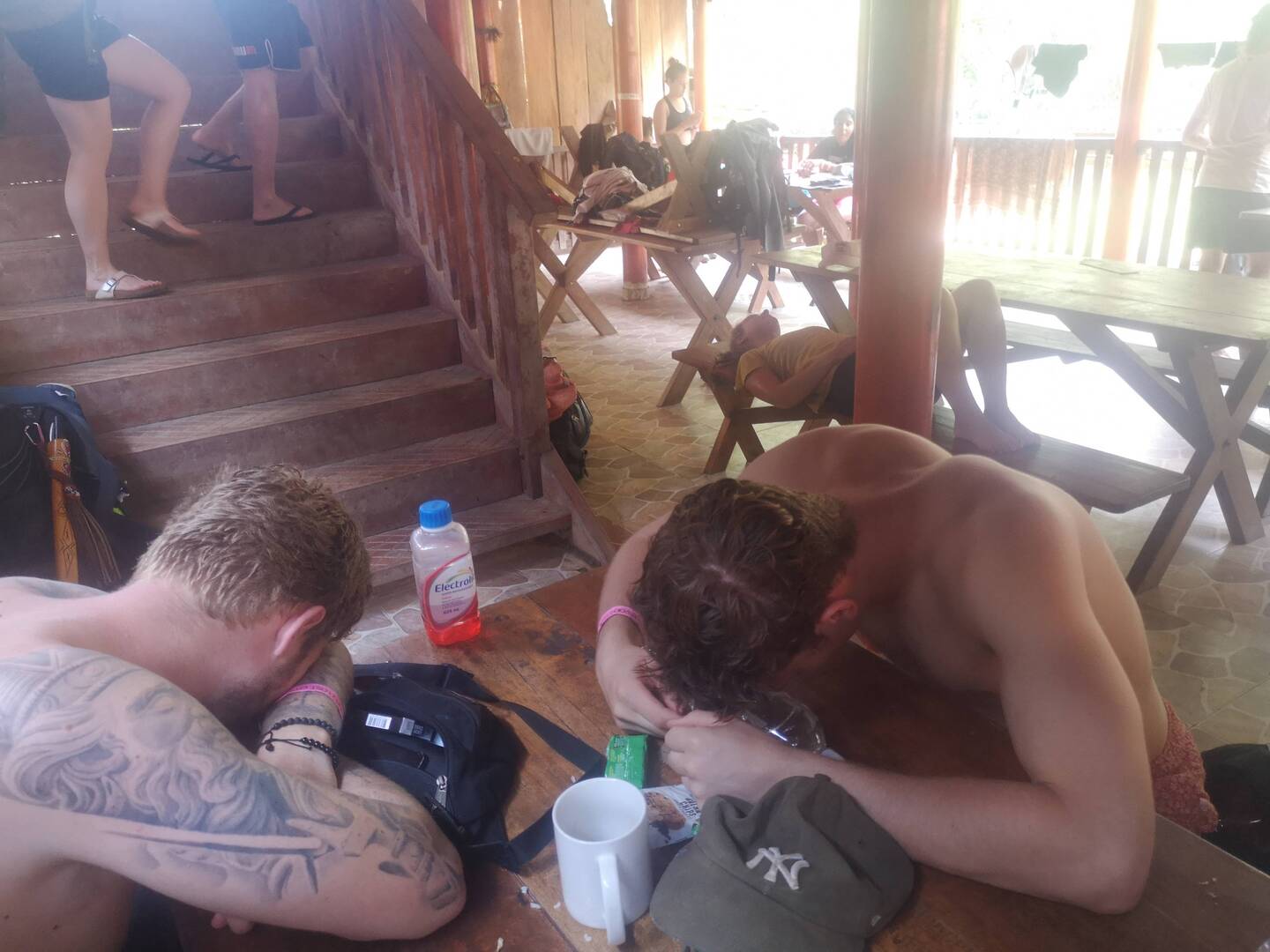 Die Gruppe hat uns fast ein bisschen besser gefallen. Laura und ich haben so so viel gelacht und gesungen und waren ganz ganz albern. Die Leones (am Anfang der Wanderung mussten wir uns einen Namen geben) bzw. Peresosos (so hat uns einer der Guides dann umgenannt, weil wir immer so langsam gepackt haben) haben sich ein bisschen zwischen Pärchen und Singles bzw. Partnerin oder Partner zu Hause gelassen, geteilt. Wir sind ja eh mit David und Thibo vom Boot angereist, es hat sich dann noch ein Deutscher namens Andi und eine französisch-Schweizerin Melissa dazugesellt.. Die waren beide noch ganz jung und sehr nett. Melissa war irgendwie so richtig französisch. Mit ihrer Aussprache und wie sie so breitbeinig ihre Hühnchenkeule gegessen hat. Andi war hingegen sehr wohlerzogen (glaube ich), hatte ein mit seinen Haustieren bedrucktes Kartendeck dabei, macht grad ein FSJ in Mexiko und will danach Medizin studieren. Dann war da noch Olek, der eigentlich aus der Ukraine kommt aber in den USA lebt und etwas sonderlich aber so herzlich war. Laura hat die Vermutung, dass er autist ist. Er hat alles immer so ungefiltert gesagt, wie er es gerade dachte. Und mir hat er gesagt, dass er seine Social Skills üben möchte. Thibo denkt, dass er vielleicht einfach etwas ZU schlau ist. Es war auf jeden Fall sehr witzig mit ihm.
