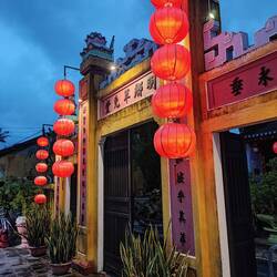 Wij eten wat en lopen dan door de straatjes verder die bezaaid zijn met lampions, iets waar Hoi An om bekend staat. Langs de hoofdstraat staan verschillende Chinese tempels, waarvan we er een paar bezoeken. In Hoi An kun je ook heel goedkoop maatkleding laten maken, de straten zijn bezaaid met kledingwinkels. Hier maken ze in 3-4 dagen een maatpak voor 75 dollar. Als we de drukte beu zijn fietsen we terug naar het hotel.Leer más