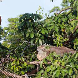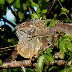 We stoppen regelmatig om verschillende vogels, een spider monkey, kaaimannen en leguanen te bewonderen. Onze gids kent het gebied goed en vertelt aan een stuk door vanalles over de dieren, de geschiedenis en zijn ervaringen. Later gaan we een rivier op die alleen voor niet gemotoriseerde boten is en daarna een nog klein riviertje. Grote bomen en palmen groeien aan de oevers. Op een gegeven moment kunnen we niet meer verder door een omgevallen boom en keren om.