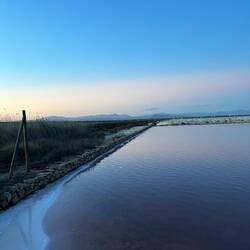 Vor Santa Pola gibt es große Salzfelder, auf denen Meersalz gewonnen wird.Am Straßenrand In den Salzfeldern selbst leben Flamingos, deshalb ist der Vogel auch Teil des Wappens der Region. 🦩