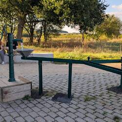 Wir suchen uns ein Plätzchen am Fluss. Sehr ruhig und schön hier. Zwischendurch begrüßt uns wieder ein 🐶.