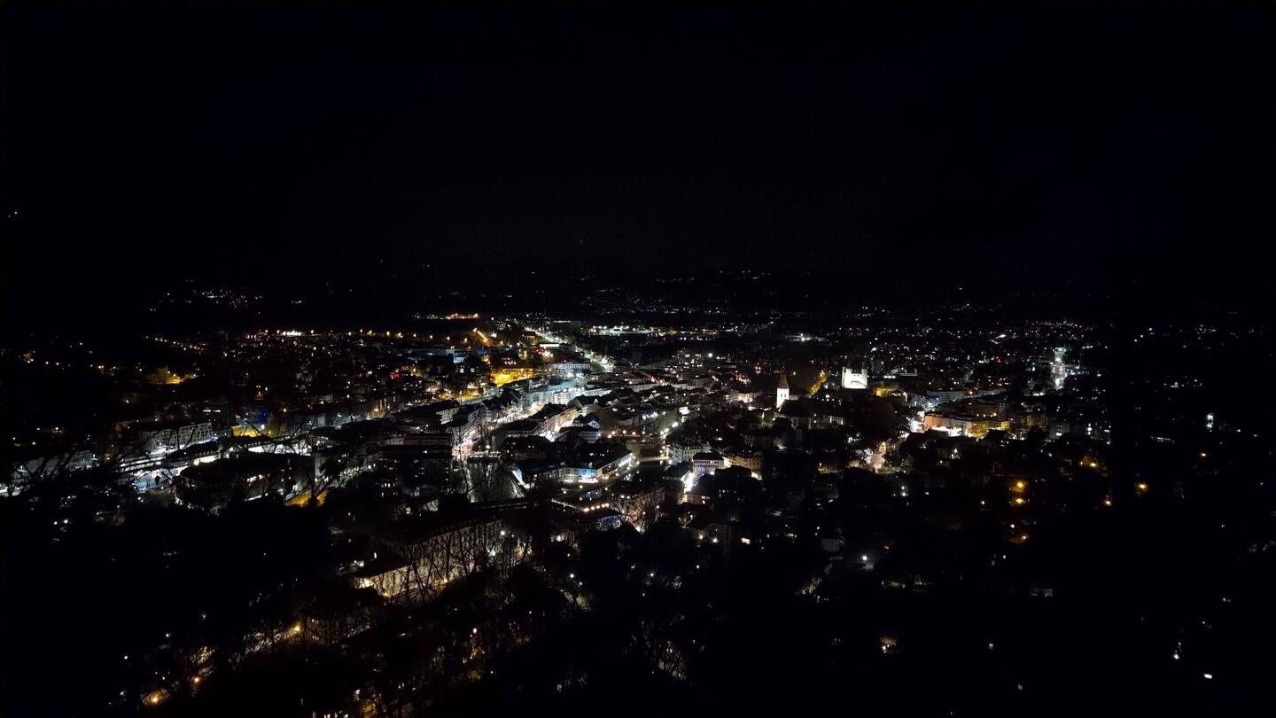 Nach einer ruhigen Nacht mit Blick auf die beleuchtete Stadt, verlassen wir das schöne Berner Oberland.