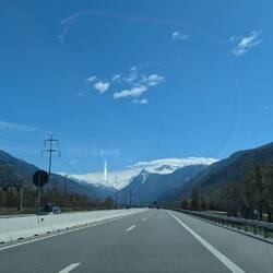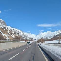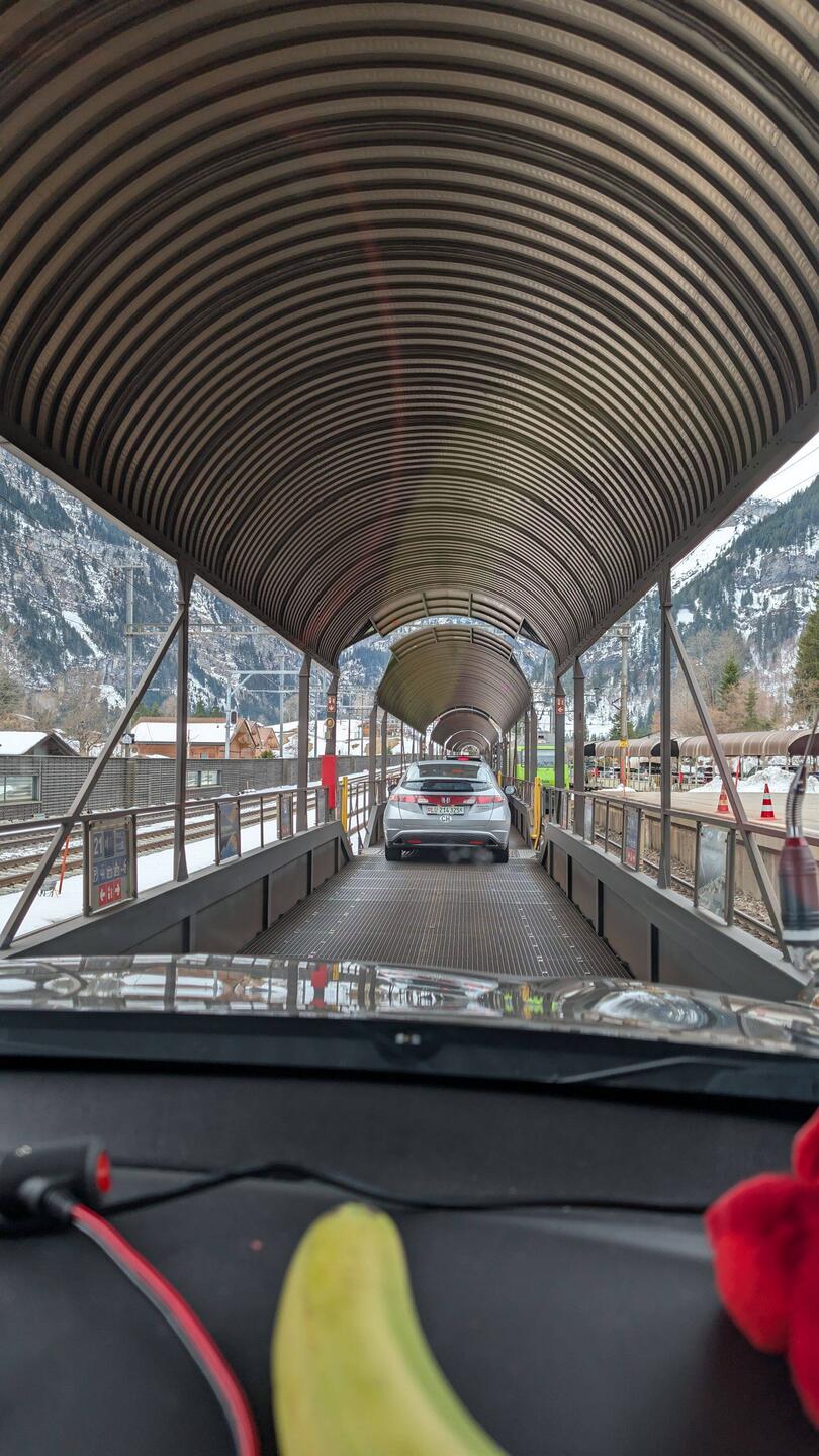 Wir nehmen den Autozug und werden auf der anderen Seite mit bestem Wetter, Sonnenschein und 16°C belohnt.