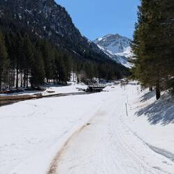 Der Weg führte uns über einen schneebedeckten Waldweg hoch in die Berge 🏔️