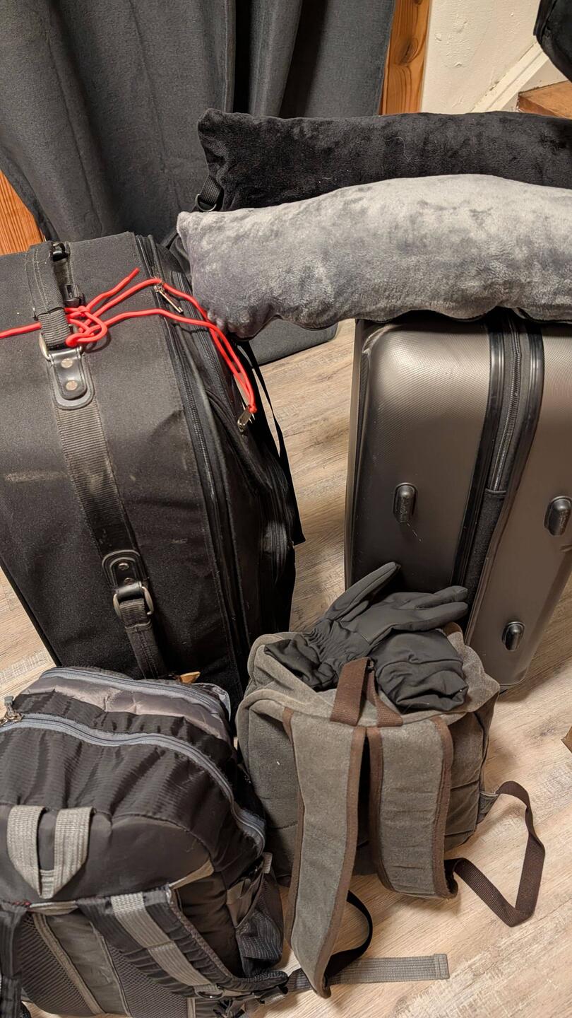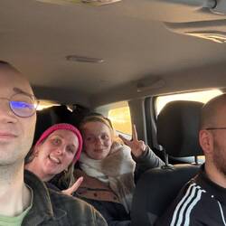 .. ist noch ziemlich müde! Koffer sind im Auto und wir am Weg zum Flughafen 🛫