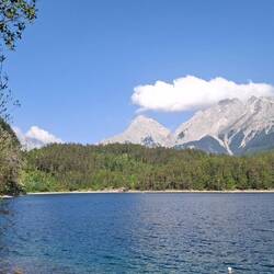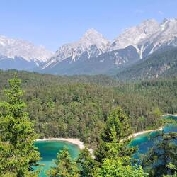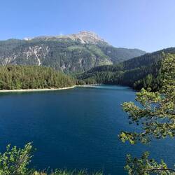 Diesesmal gemächlich. Pfingstmontag. Mountainbiker unterwegs, später dann nur noch Wald, kaum Geräusche, blühende Natur, blauer Himmel, Berge, wie im Yosemite Park, vielleicht etwas weniger spektakulär, aber dann unterhalb des Fernpasses doch genauso von Touristen überlaufene Terrasse wegen Blick auf die Zug- und Sonnenspitze mit dem Blindsee, wiederum in fast karibischen Blautönen funkelnd.