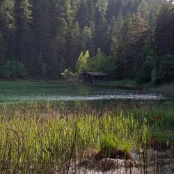 Später tauchte ich in das kalte Nass des Blindsees, was so erfrischend war, auch wenn es erst Überwindung kostete. Die Frische des Wassers blieb auf dem weiteren Weg, entlang der Steine, manchmal gesichert. Blick hinauf zu den Abhängen, Gedanken an den Felssturz von Blatten. Vor 6000 Jahren fand wohl hier ein solches Ereignis statt und staute den Blindsee auf. Nach einem Auf- und Abstieg der Mittersee, verträumten, fast schon im Abendlicht, ein wenig Wind über den Wellen, dass sie glitzernden. Ein Bootshaus und ein von Sonne beschriebenes Moosbett zwischen den Kiefern wie aus WILDE ERDBEEREN. Am Ende des Films sieht Borg ein, dass er zu lange in Arbeit und Selbstsucht gelebt hat.