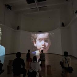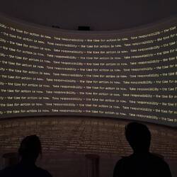 Eine Gesellschaft trug das mit, eine Gesellschaft wusste davon, eine Gesellschaft verrohte. Ich wuchs dankenswerterweise in einer Gesellschaft auf, die NIE WIEDER diese Entmenschlichung geschehen lassen wollte - bis auf ein paar wenige. Ich höre die Stimmen der Überlebenden an. Sie hallen von den Wänden, die mit Schemen bespielt werden, unklaren Bildern, wie aus einer Erinnerungstraumwelt. Es ist alles geschehen, schleichend, langsam, aber von einer Mehrheit getragen, die nur den nahen Aufstieg, die nahe Verbesserung sah, aber nicht die Folgen und Implikationen.