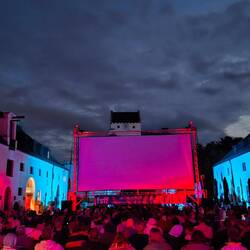 Nach dem Film saß ich auf dem Platz vor dem roten Kubus des Sala Giardino, den ich so gerne in Starnberg kopiert hätte, für den ich aber niemanden begeistern konnte, und wartete auf Lorin. Es war schön, ihn dabei zu haben, sich auszutauschen.