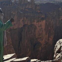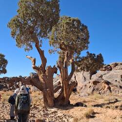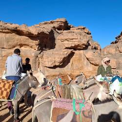 Verladung des Gepäcks auf die Esel (das Hauptgepäck verbleibt im Camp in Djanet) und Aufstieg über den Pass Col de Tafaloulet auf das zwischen 1600 und 1800 m hoch gelegene Hochplateau. Mittagspause und erste Wanderung zu den Felsbildern bei Tamrit u.a. mit der einzigartigen Darstellung von Antilopen. Wanderung in das Zypressental, ein