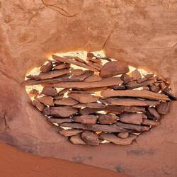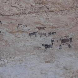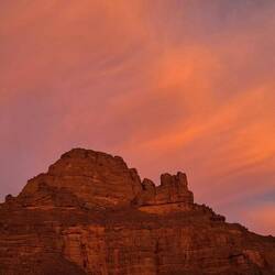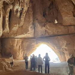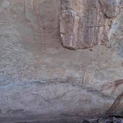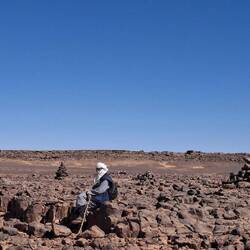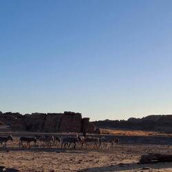 Oder .... wie eine unendlich weite Ebene vor kambodschanischen Tempeln, nur vom Wind geformt. Jede Steinwüste führt dann doch zu neuen Ausblicken, Formen, erstaunlichen Gebilden. Wind und Wasser formen sie über Jahrtausende. Die Zeichnungen an den Höhlen zeigen von der Geschichte und der Urzeit. Kamele, Schafe, aber auch in der ersten Phase weissliche Fabelgestalten. Ein Kamel wird gebändigt, um es zu essen, eine Familie weist zu Mond un Sternen. Wüstenrot zwischen Sand, dann eine in sich verschlossene Wüstenrose, die Frauen bei einer schwierigen Entbindung helfen konnte, dann ein Steingrab eines Nomadenchefs. Er wurde neben seinem Freund begraben, dazwischen zwei Kinder. Welche Geschichte sich wohl dahinter verbirgt.Read more