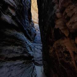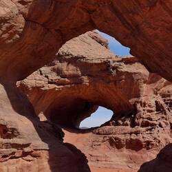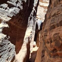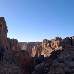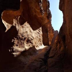 des Ausgangspunktes, haben Sie drei Aufstiege und drei Abstiege zu bewältigen. Über eine Düne, zu einem sagenhaft schönen Aussichtsplateau hoch, über Felsen in die Schlucht