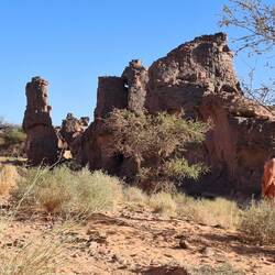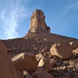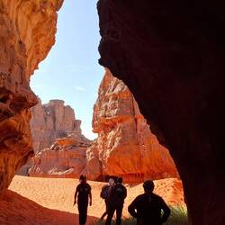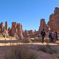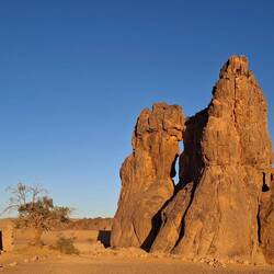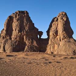 „Fußballweltmeisterschaftspokal“, zum „Zirkus“ und zurück zum „Amenokal“. Nach der Mittagspause geht die Fahrt, immer wieder von kurzen Stopps unterbrochen, nach Tidounag, dem heutigen Nachtlager, wo Sie u.a. eine Höhle besichtigen.