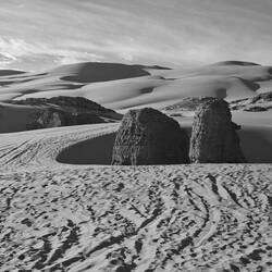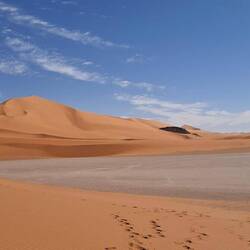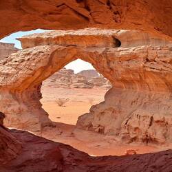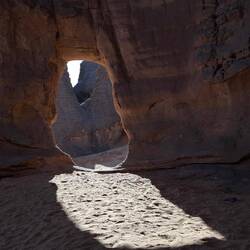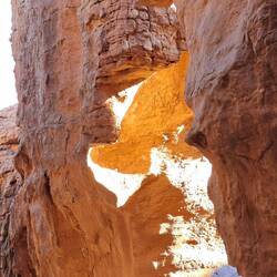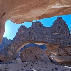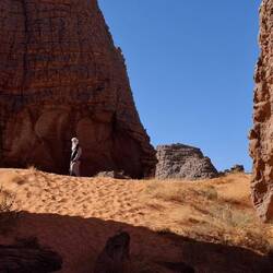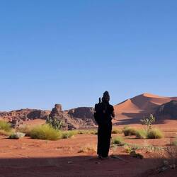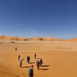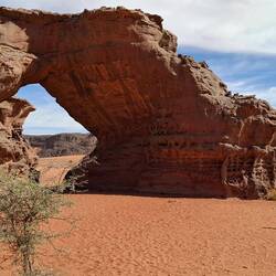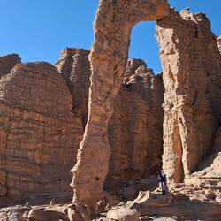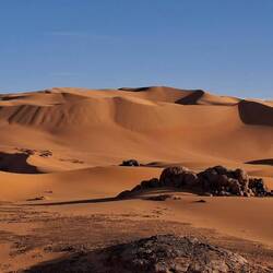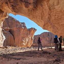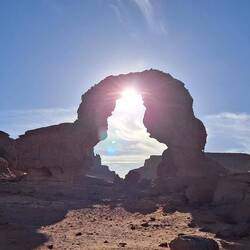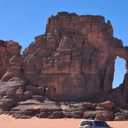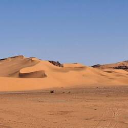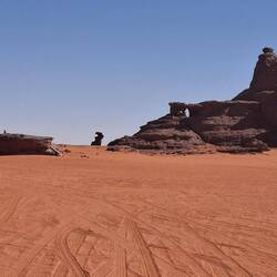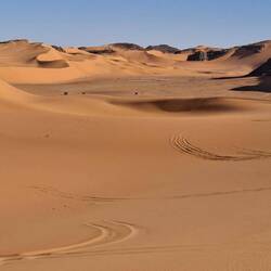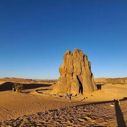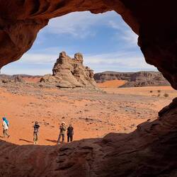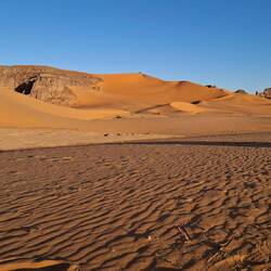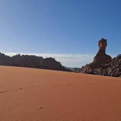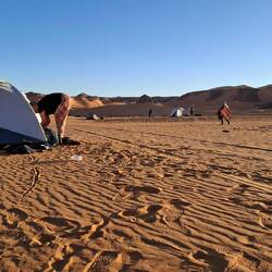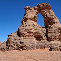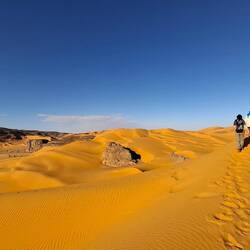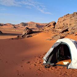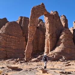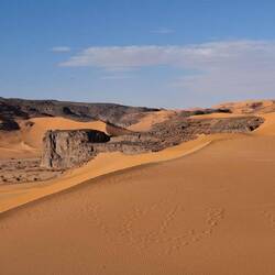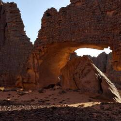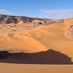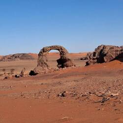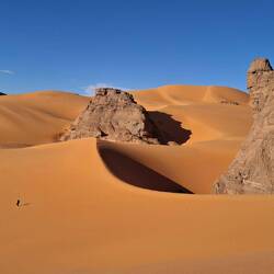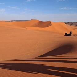 hinunter und über eine weitere Düne hinauf, von wo aus Sie einen wunderschönen Blick auf den Bogen von In Tehak haben. Nach einer Rast, die Sie zur kurzen Erholung und zum Fotos schießen nutzen, geht es ein letztes Mal eine Düne hinab. Nachtlager heute in den Dünen von In Djaren, wo Sie inmitten des Sandmeeres die Zelte aufzuschlagen.