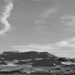 Ansonsten morgens Spaziergang zwischen Felsen und Dünen. Dann Wanderung darüber, über weichen und harten Sand, erneut zu Felszeichnungen oder -einkerbungen, erneut von Giraffen und Elefanten, dann vor Kriegern und von Fährten und Tieren wie von einem engagierten Lehrer. Dazwischen graue, von der Ferne aus fast neblig wirkende Flächen von einem früheren See oder jetzt Auffangflächen vom sehr seltenen Regen. Bögen, Schlangen, Linien, Wellen, Biegungen, Rundungen, Wogen und Grate, Wälle und Senken, vom Wind geformt, wandernd, sich bewegend, in Licht und Schatten getaucht, die Form verstärkend.Read more