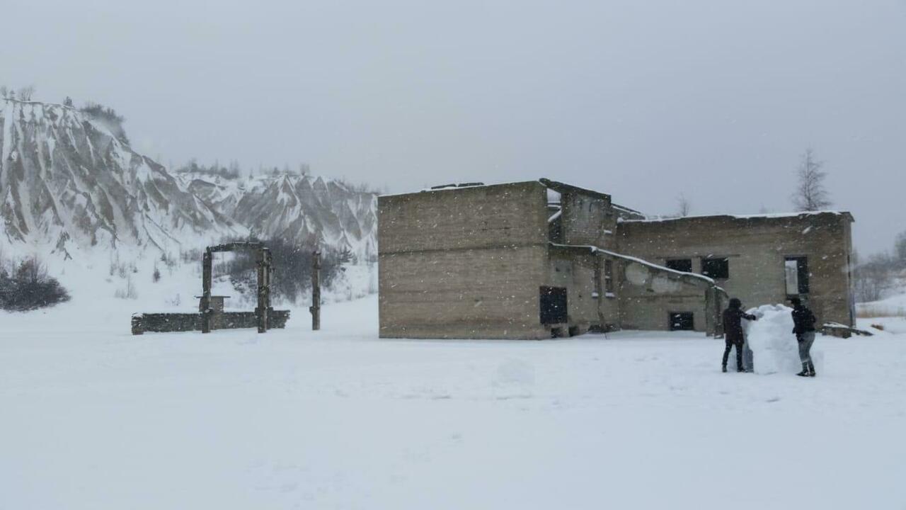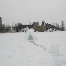 To complete our day task, we drove to Rummu, where an old prison stands in a frozen lake. Due to the snow and the ice being unclear we were not able to see the parts of the prison below the water, as was expected.