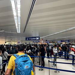 Da lobt man sich doch das gut organisierte Frankfurt Flughafen Bodenpersonal. Jeder Schalter ist hier besetzt und tausende tummeln sich hier mit meist Unmengen an Gepäck.