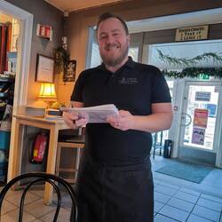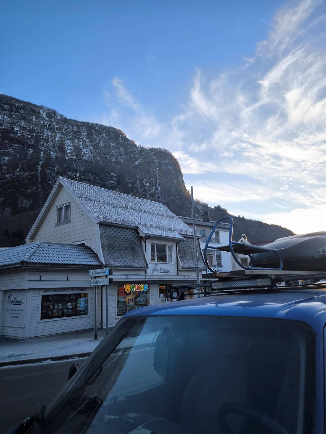 In der Stryn Kaffeebar bei einen Deutschen Auswanderer. Und mit dem einheimischen Chef die heutige Bild challenge erfüllt