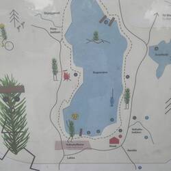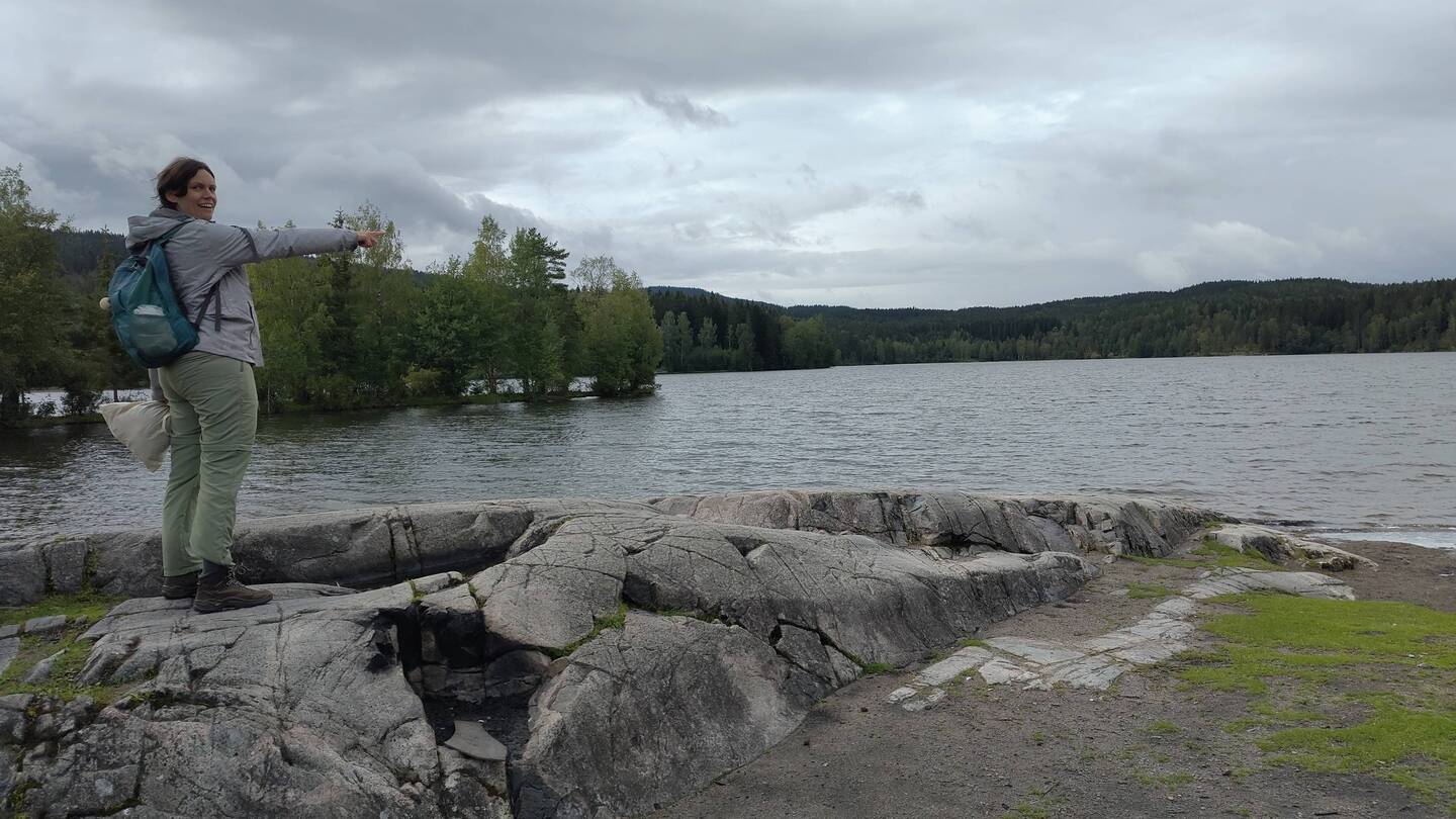 Wandeling rond het Sognsvann meer. Tot slot een verkwikkende duik. Volg de vinger van Liselotte voor de exacte locatie.