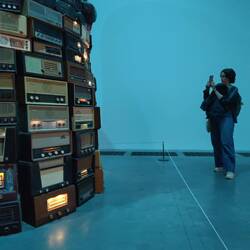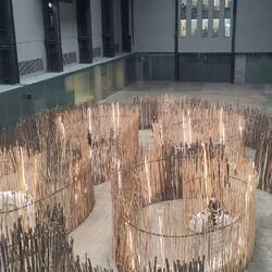 Bij binnenkomst een doolhof van een Sami kunstenaar. Het ging over de impact van klimaatverandering op de conditie van de sneeuw. Sneeuw valt, smelt half, bevriest en vormt een laag ijs op de bodem,Read more