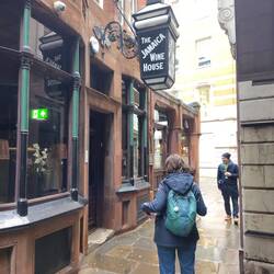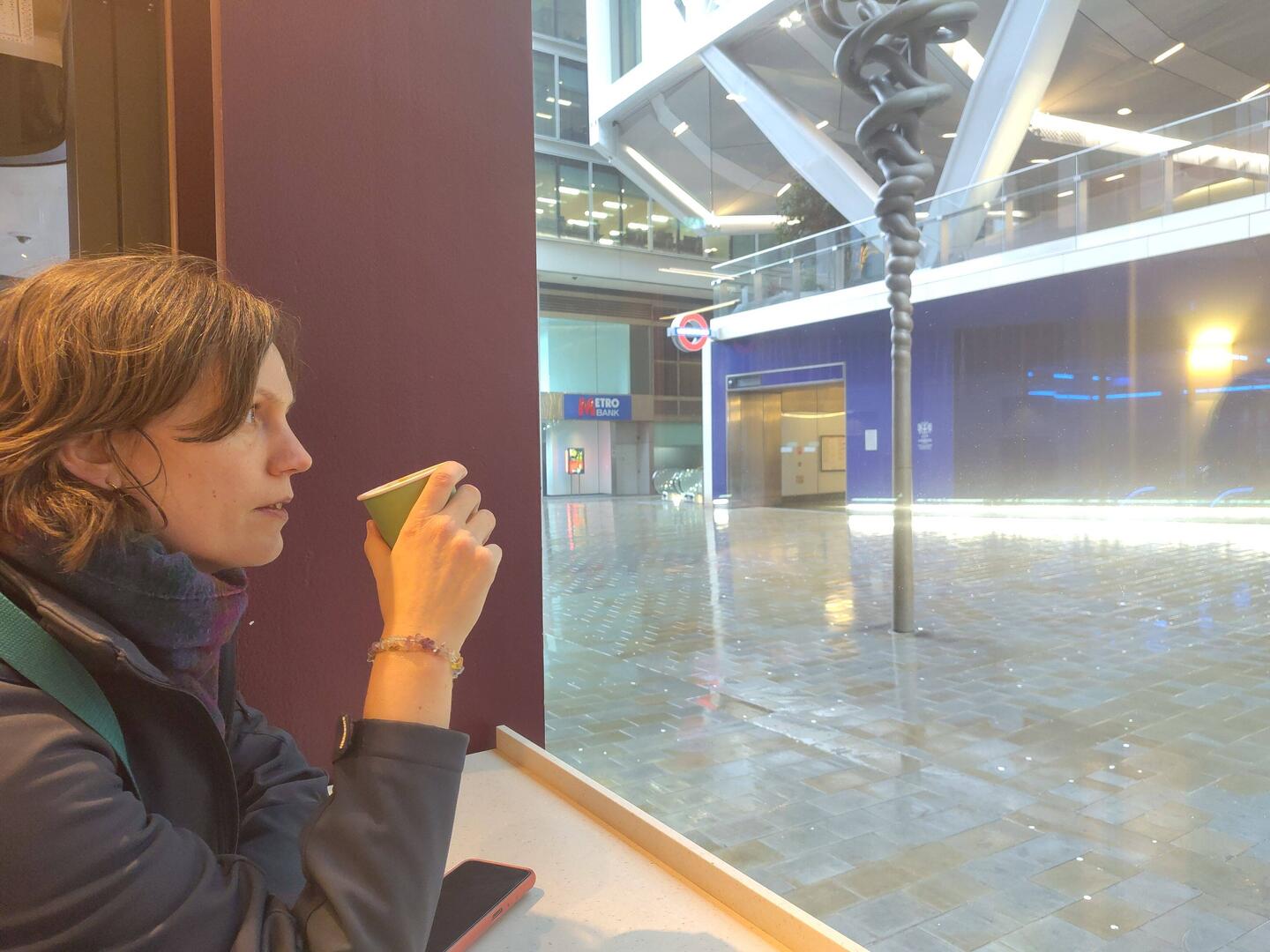 Met onze koffie in de hand zagen we David aan komen lopen bij het afspreekpunt. Onze privé gids voor de komende twee uur door de City of London. Het andere deel van de groep had afgezegd.