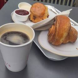 Ruim op tijd voor de walking tour. Koffietje besteld. We staan te wachten tot het klaar is. "Catherine, Coffee for Catherine" wordt er geroepen. Nope. O, it's Kevin. Sorry guys...