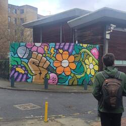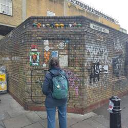 We hadden nog een ochtend te vullen en besloten een wandeling te maken langs een aantal streetart werken. Op Brick lane kwamen we weer veel gekleurde broccoli tegen. Die hadden we eerder gezien.