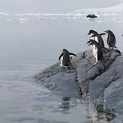 Nachmittags ist der letzte Ausflug angesagt. Eine Rundfahrt, wir sehen wieder tolle Eisberge, springende Pinguine und Kormorane. Die Sonne kommt kurz raus und es ist warm.