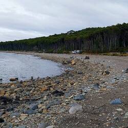 Bei Wolken und Wind schauen wir uns die Stromatolithen bei der Laguna de los Cisnes an. Durch Bakterien entstehen diese Gebilde. Nachmittags sind wir wieder in Porvenir und versuchen Pesos vom ATM zu holen. Das klappt leider nicht. Aber im kleinen Supermarkt können wir mit Karte zahlen. Am Hafen warten wir in der Sonne bis der Ticketschalter aufmacht. Um 18 Uhr können wir auf die Autofähre und sie fährt pünktlich um 19 Uhr ab nach Punta Arenas. 2 Stunden bei ruhiger See über die Magellanstraße und dann geht's mit Volldampf Richtung Süden. Die Straße führt die Küste entlang und überall, wo ein bisschen Platz ist, sind die Chilenen mit Kind und Kegel beim zelten und am Lagerfeuer. Nach ungefähr 70km warten Marianne und Peter auf uns. Bei Lagerfeuer und Sekt stoßen wir mit ihnen, einem Paar aus der Schweiz und zwei Oberaudorfern auf das neue Jahr an.