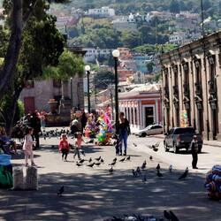 Mit Christin und Thomas fahren wir nachmittags nach Oaxaca. Die Straßen sind wieder voll mit bemalten, schön gekleideten Menschen. Auf einer schönen Dachterrasse stärken wir unsLeia mais
