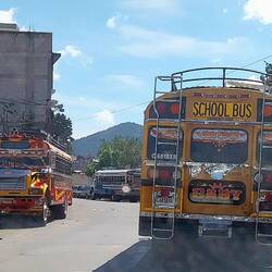 Mit dem öffentlichen Bus für 0,35€ pro Person fahren wir in die Innenstadt von Quetzaltenango. Ungefähr 207.000 Einwohner, liegt auf 2330m. Die Busfahrt ist entspannt, genauso wieLeia mais