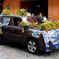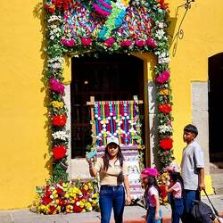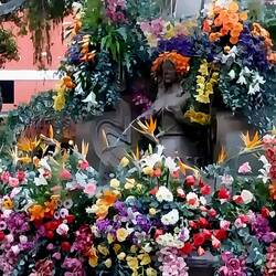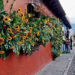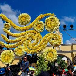 Wir verbringen den Tag im historischen Zentrum mit schauen, essen und wundern. Über diese Blumenpracht, alles per Hand gesteckt. Auf dem Hauptplatz ist Musik und eine Tanzvorführung,Leia mais