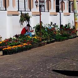 Mit dem öffentlichen Bus von Tule aus fahren wir nachmittags nach Oaxaca. Eine schöne Stadt mit vielen bunten Häusern aus der Kolonialzeit. Weit kommen wir nicht, auf dem Platz vor der KathedraleLeia mais