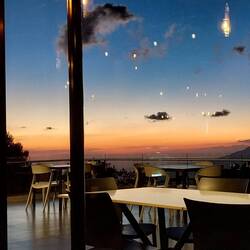Die Nacht war so stürmisch, zeitweise hatte ich das Gefühl, das Auto fällt gleich um. In der Früh ist es wieder warm, der Kaffee mit Blick auf den Strand ist super.