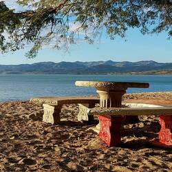 So schön ist es am See doch nicht. Abgesehen vom Müll, den bettelnden Hunden und dem nicht einladenden Wasser, werden wir die ganze Zeit von der Familie im Häusl oberhalb beobachtet.Read more