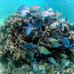 Vormittags schnorcheln wir am Hausriff. Nicht weit draußen und es gibt viele Fische. Nachmittags regnet es.